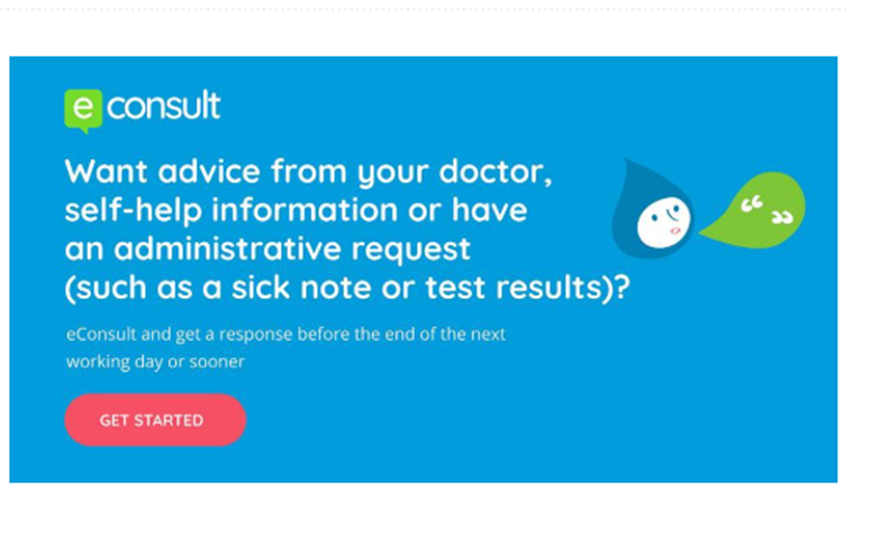 We already use e-Consult and it is available on our website now. You are able to submit an admin request Mon-Fri 8am-6.30pm and medical queries between 8am-12pm Mon-Fri while we have capacity and then it is closed. From the 2nd of January this will change to be open Mon-Fri 8am-6.30pm excluding bank Holidays.